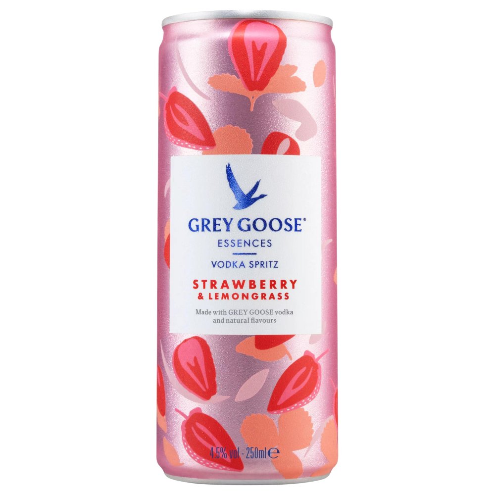 GREY GOOSE Essences Vodka Spritz Strawberry & Lemon Premix Cocktail, 25cl (250ml x 12 x 1)