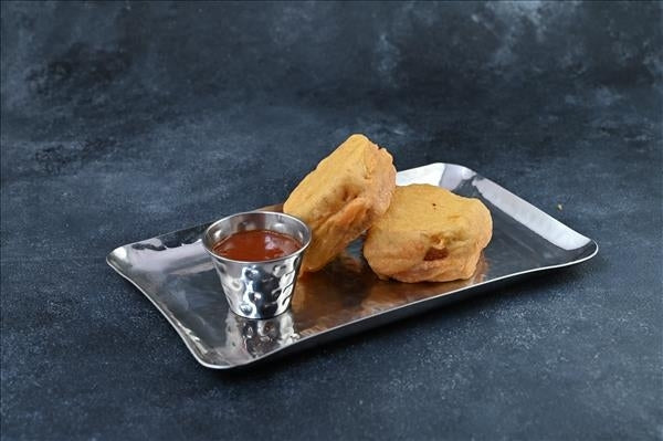 Deep-fried battered sandwich of succulent paneer & sauces